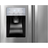 E energielabel. Koeldeel: 371Ltr. Vriesdeel: 191Ltr. H: 178cm. B: 91cm. 42dB. 2 Groenteladen. 2 diepvriesladen. NoFrost. Ijs- en waterdispenser.