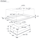 Min-max hoogte van totale kap in recirculatie: 203 mm